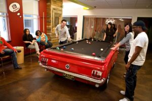 7- دفتر مرکزی Quiken Loans در دترویت که فضای تفریح و بازی برای کارکنان فراهم کرده است تا اگر حالشان بد بود،بد نماند.
